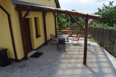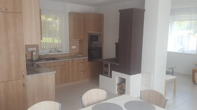 Dům s kapacitou ubytování 14 osob je samostatně stojící stavba na oploceném pozemku s možností parkování 4 aut. Dům má 3 ložnice a obývací pokoj spojený s kuchyní (dům je 2 patrový). V kuchyni jsou i kachlová kamna. Na každém patře je samostatný záchod, koupelna se sprchovým koutem a vanou. Topení a ohřeh teplé vody je zabezpečen tepelným čerpadlem. Venkovní posezení je možné na terase u kuchyně a dále na zastřešeném posezení. Na zahradě domu je pískoviště, ohniště, přenosný gril, houpačka a finská vana. Energie a dřevo na topení je součástí ceny.