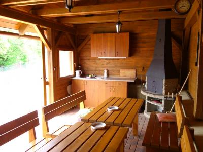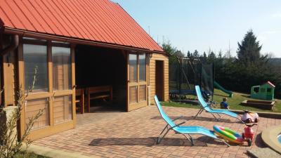 V Chalupě jsou 4 vybavené pokoje, s kapacitou 15 osob (+ možnost dvou přistýlek) - pronajímáme pouze celý objekt. Na zahradě je zastřešené posezení s krbem (udírna + gril), bazén,houpačky, pískoviště, trampolína... Parkování přímo u objektu, k dispozici garáž na kola a lyže. V chalupě je kompletně zařízená kuchyň (nádobí, mikrovlná trouba, lednice, varná konvice, sporák, TV,...). Společná koupelna se sprchovým koutem a dvě samostatné WC. Pro zábavu stolní fotbal a šipky. Okolí nabízí podmínky pro bežecké lyžování, turistiku, cykloturistiku, golf,.... Ideální místo pro klidnou rodinnou dovolenou s dětmi, nebo menší firemní akce.