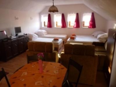 Našim hostům nabízíme ubytování formou apartmánu, k dispozici jsou jim 4 lůžka + 2 přistýlky (rozkládací pohovka) a malý dvoulůžkový pokoj Pro hosty je k dispozici také terasa s posezením a venkovním grilem. Parkování je zajištěno pro tři automobily. V případě zájmu je v přízemí budovy k dispozici degustační místnost s krbem, tzv. presúz (lisovna vína), ve které můžete okoštovat naše vína, která Vám budou po celý pobyt k dispozici a při odjezdu je zaplatíte. K zapůjčení 4 kola!