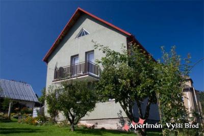 Ubytování v rodinném Apartmánu Vyšší Brod 4+1 pro 8+1osob v centru města Vyššího Brodu, nabízíme veškerý konfort ubytování v soukromí. Město Vyšší Brod vám nabídne veškeré možnosti pro trávení vaší dovolené. Historie a příroda zde vytvořili nerozlučné pouto, které vás dojme na každém kroku. V kulturním a historickém městě Vyšším Brodě můžete navštívit Poštovní muzeum, Cisterciacký klašter, vodopady sv. Wolfganga, křížovou cestu a poutní místo Marie Rast, zatím neobnovené pamatní vyhlídkové místo F. Nietsche, Opatska stezka I. II., Švédské šance Radvanov. Sportovní aktivity jsou spjaté s řekou Vltavou: sjíždění kanoji a raftem, vyjíždky na koních. V okolí můžem navštívit hrad Rožmberk, Český Krumlov (historická památka UNESCO). Zima na přehradě Lipno: Skiareallipno: běžkařské trasy upraveny, bruslení a běžkování na zamrzlém jezeře. Fotogalerie