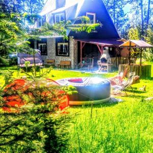 Pri chate je prístrešok s vonkajším posedením a ohniskom, kde si môžu ubytovaní host