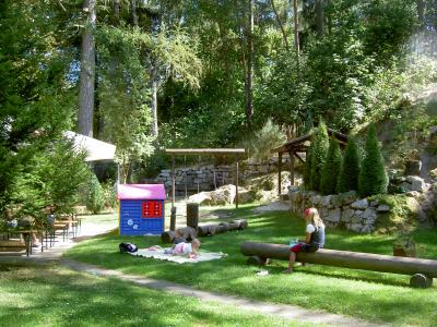 s lesoparkem, členitou zahradou a zastřešeným bazenem, dětské hřiště v krásném prostředí, pokoje s výstupem do zahrady
